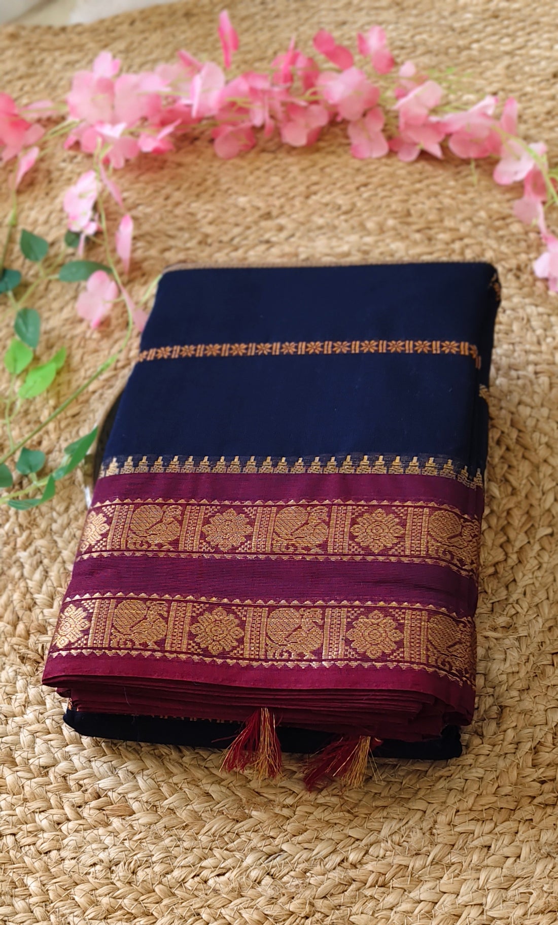 Velthari Symphony - Navy Blue & Maroon - Kanchi Cotton Saree