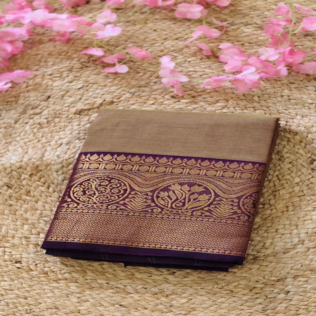 Sandstone Grace - Grey & Dark Green - Kanchi Cotton Saree