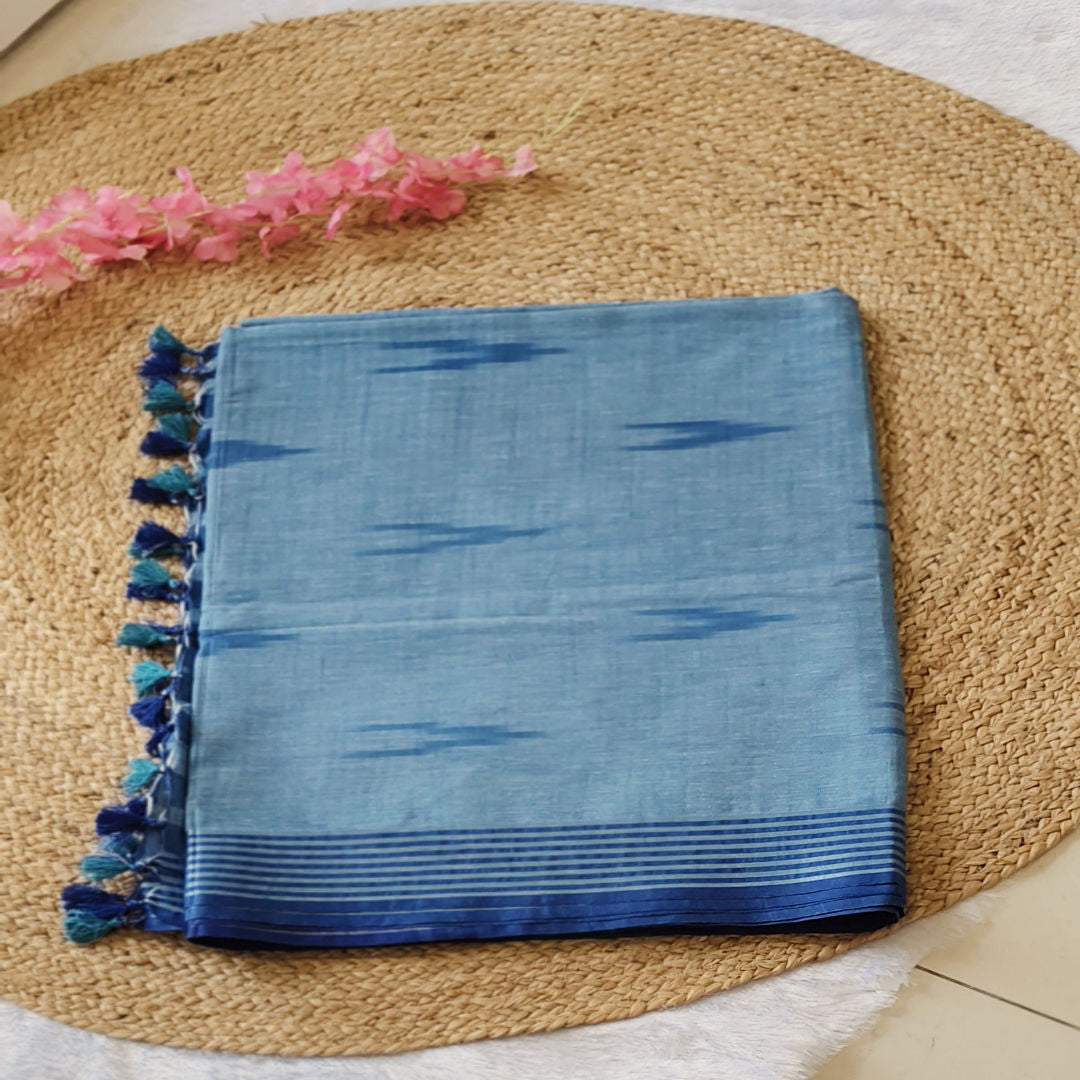 Indigo Breeze - Light & Dark Blue - Pochampally Linen Cotton Saree
