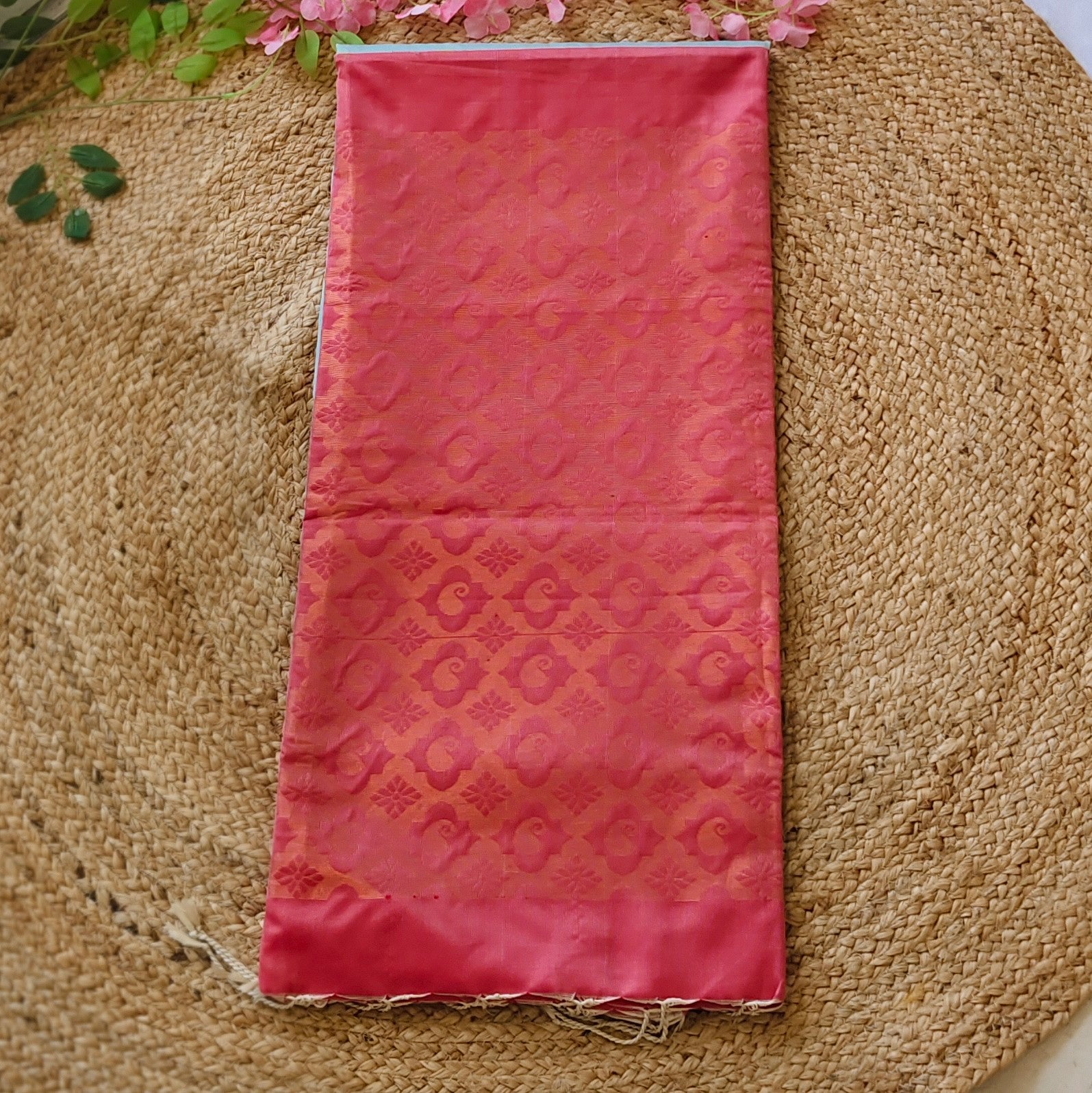 Aqua Bloom- Blue & Pink- Semi Soft Silk