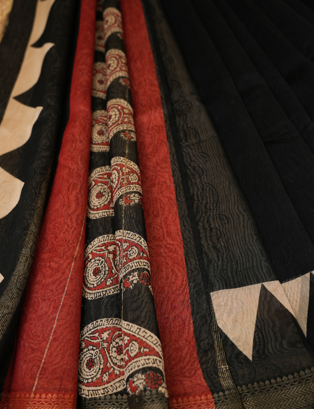 Black Mosaic - Elegant Black - Maheshwari Silk Cotton Saree