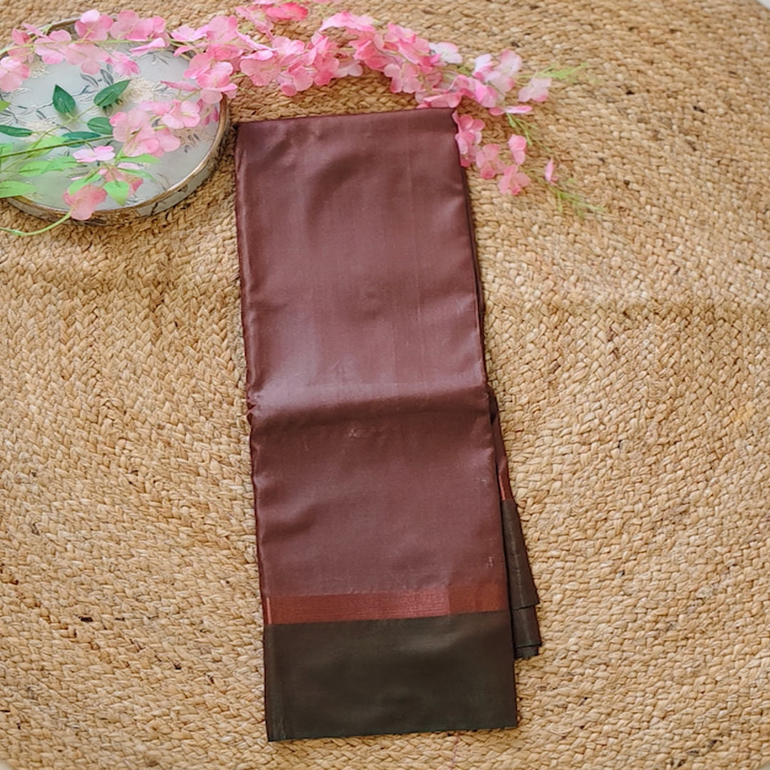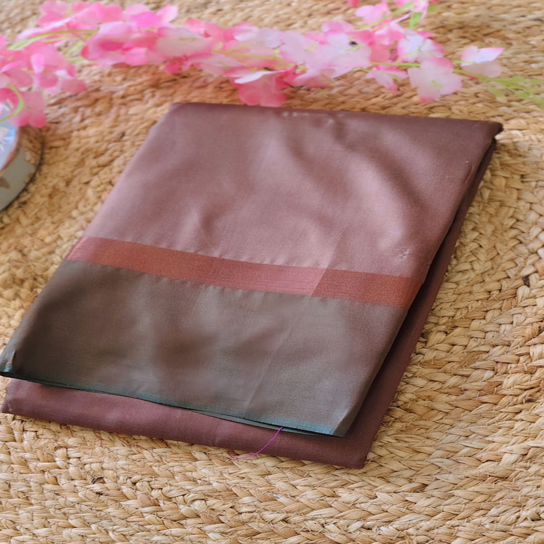 This stunning dual-tone fancy saree features dark brown body with a contrasting magenta pink offering a refreshing play of colours.