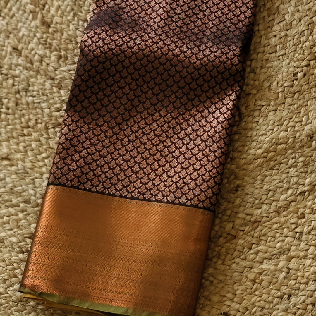 Copper Glow - Copper & Black - Semi-Silk Saree