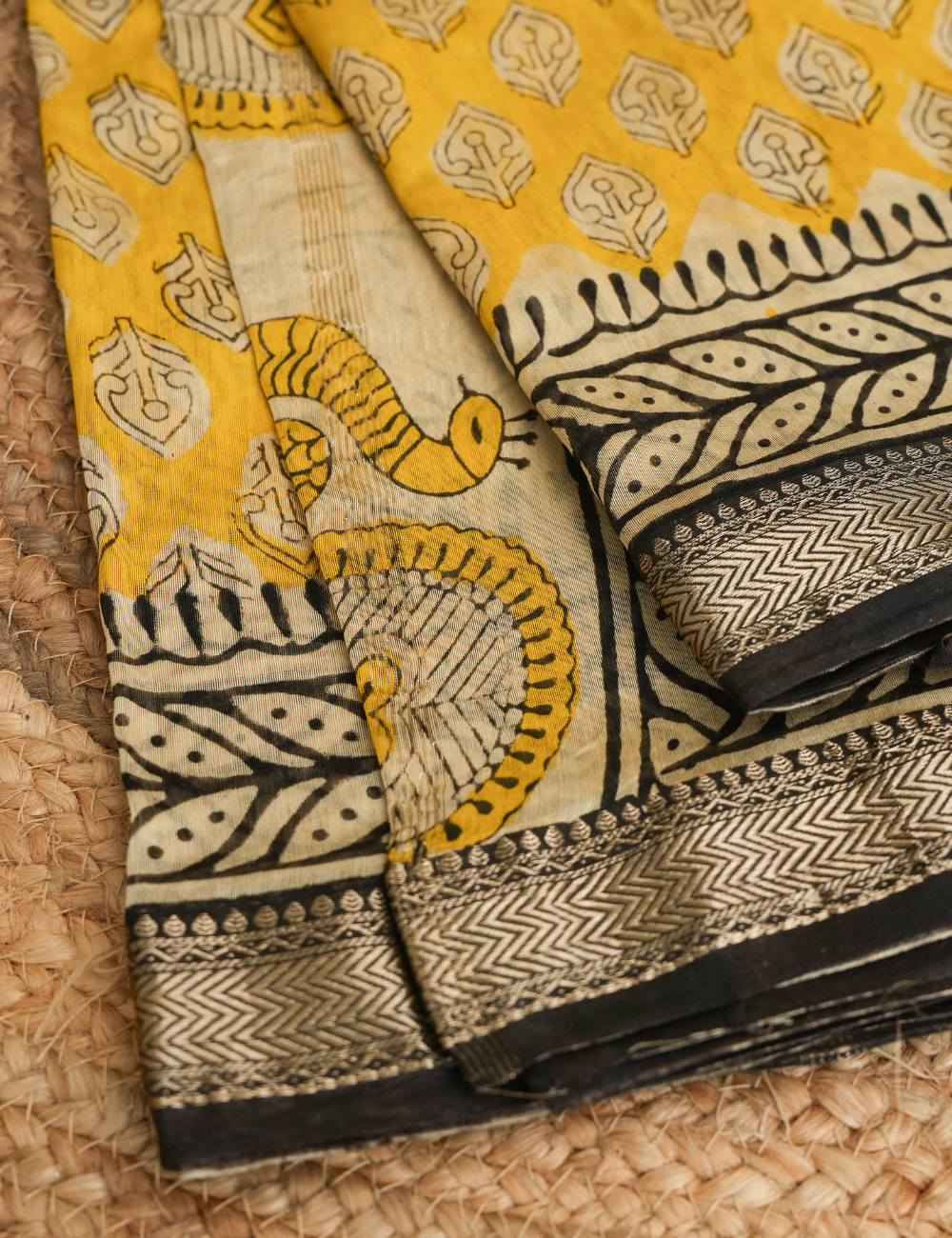 Daffodils Grace – Yellow & Black - Maheshwari Silk Cotton Saree