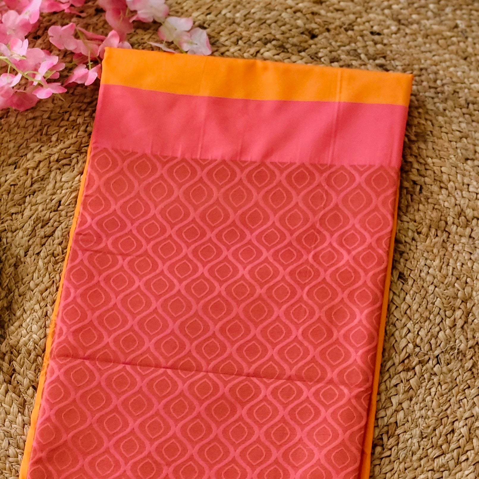 Golden Coral- Mango yellow & Coral pink - Semi soft silk Saree
