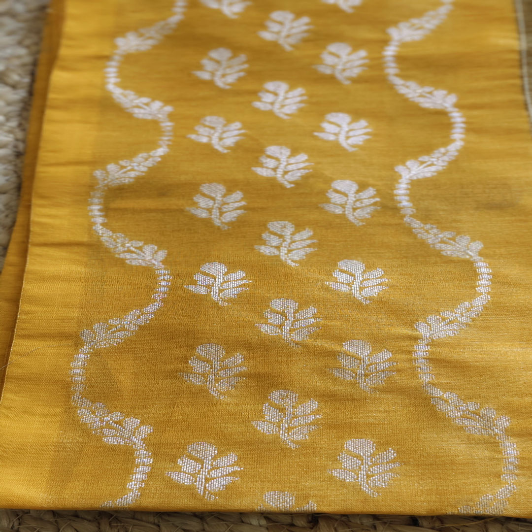 This semi-munga silk saree is a celebration of warmth and grace. The body features a mustard yellow base adorned with delicate motifs, while the deep yellow border brings warmth. Lightweight, breathable, and full of charm - whether it’s a festive celebration or a traditional function, this saree ensures you stand out in pure grace.
