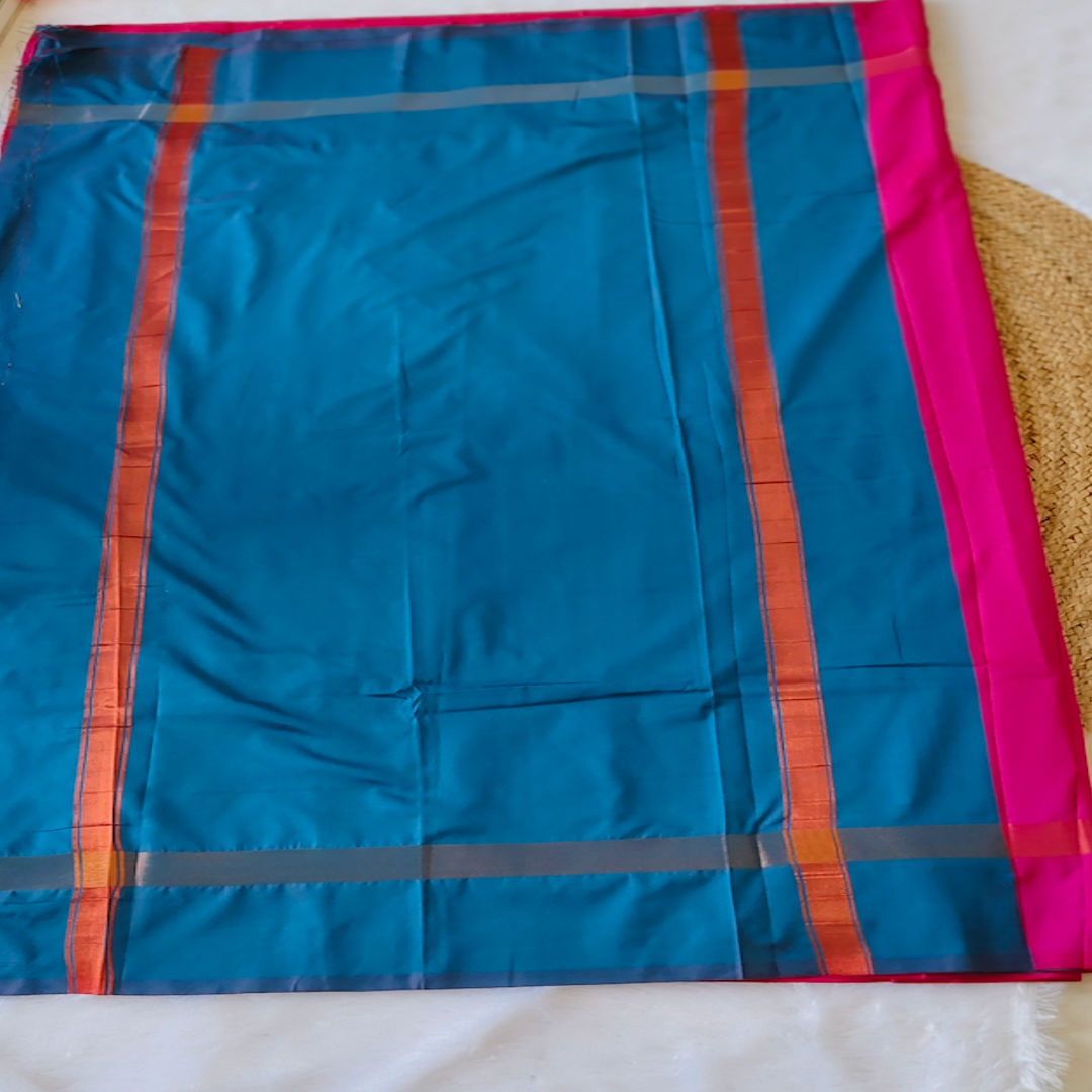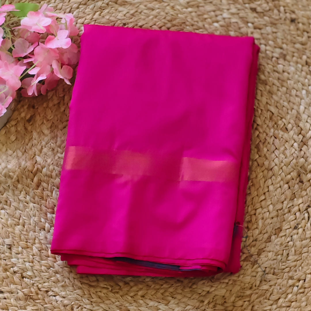 This stunning dual-tone fancy saree features a hot pink body with a contrasting blue pallu offering a refreshing play of colours.