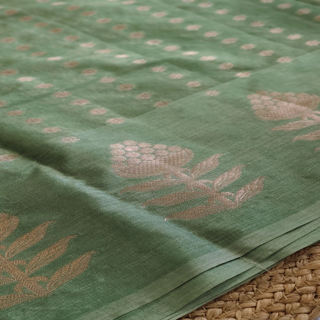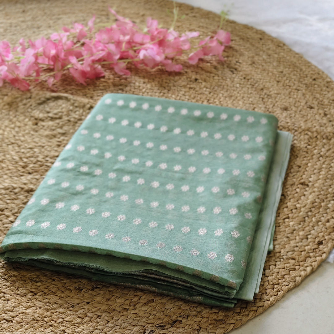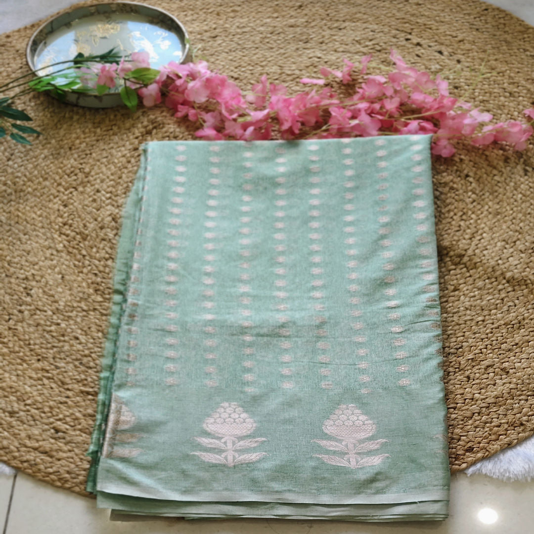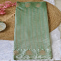 Meadow Bloom - Gradient Mint Green - Raw Mango Silk Saree