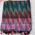 Pink Enigma - Pink & Grey - Pochampally Linen Cotton Saree