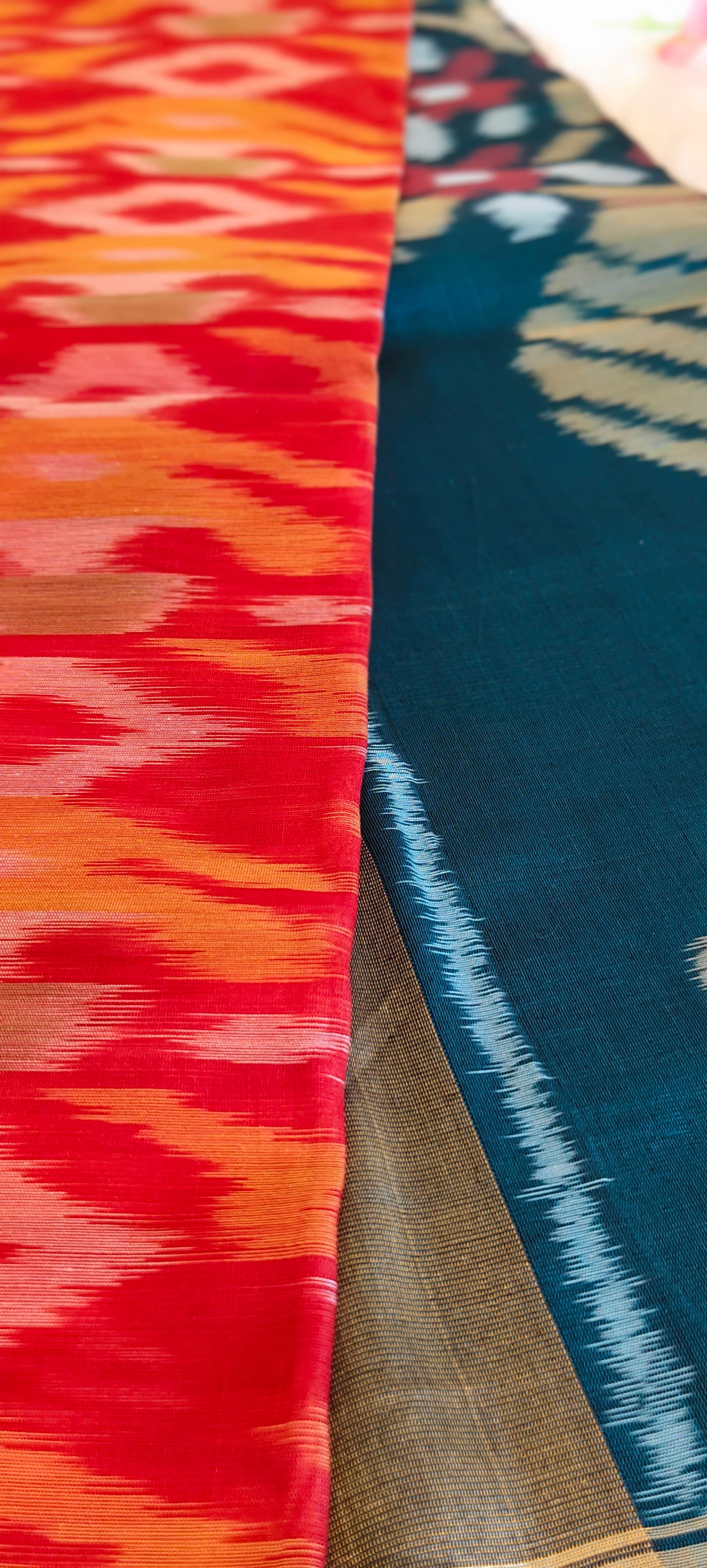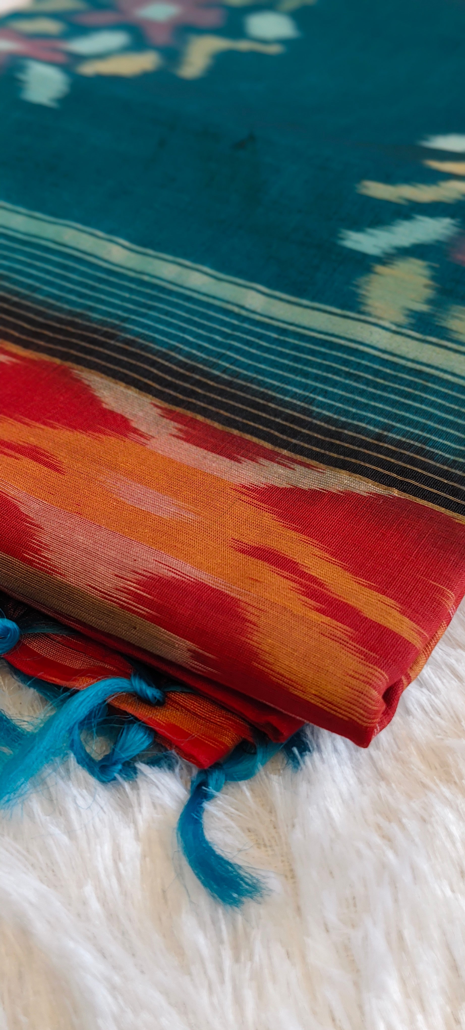 Saffron Ember - Red & Teal - Pochampally Sico Silk Saree
