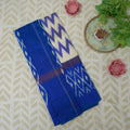 Indulge in the elegance of this exquisite Pochampally Silk Saree, a true testament to the rich heritage of Indian handloom. The deep royal blue base, adorned with mesmerizing Ikat weave patterns, makes this saree a luxurious addition to your wardrobe.