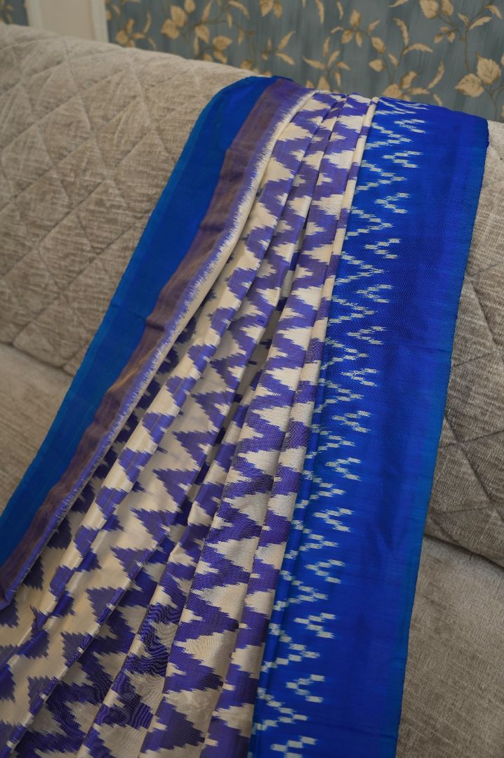 Sapphire Maze - Royal Blue & White - Pochampally SIlk Saree