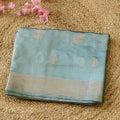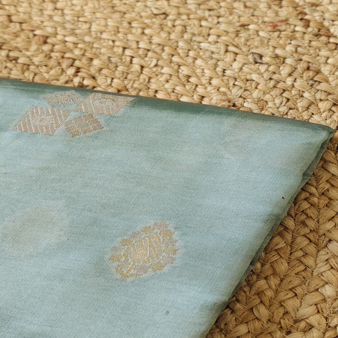 A vision of freshness and poise, this light green Raw Mango silk saree is a celebration of delicate beauty. Adorned with golden buttas and a finely woven zari border, this saree is the definition of effortless grace. Its pastel hue makes it a stunning choice for daytime weddings, receptions, and elegant soirées. It's uniqueness is authenticated with a silk mark certification.