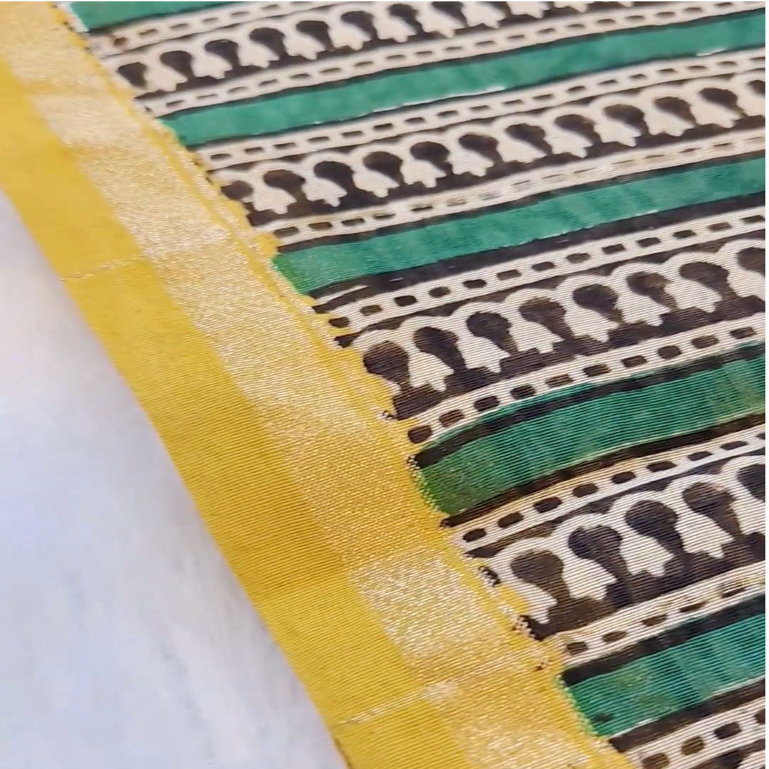 Sunlit Meadow - Yellow & Green - Chanderi Silk Cotton Saree