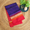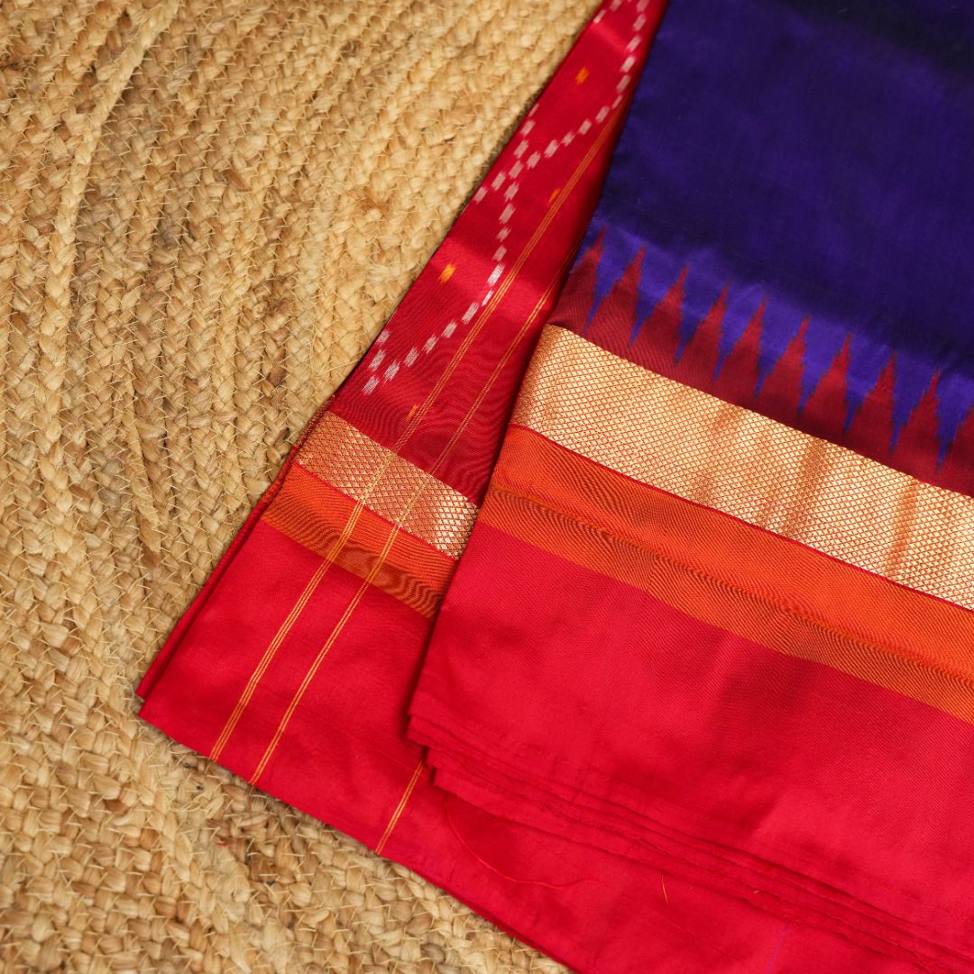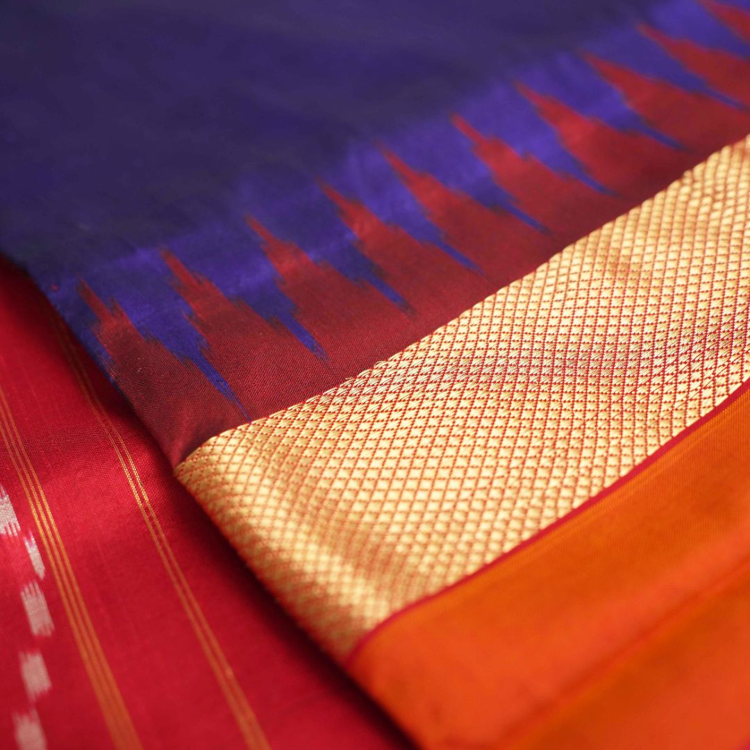 Twilight Flame - Blue & Red - Pochampally Silk Saree