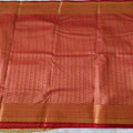 What truly sets this saree apart is its rich red pallu, masterfully woven with heavy golden zari work, drawing inspiration from traditional temple borders and floral vines. The elaborate design creates a striking contrast, making the saree a statement of grandeur and elegance.